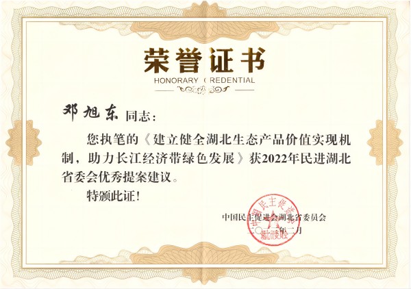 参政议政是民主党派基本职能之一,是人民政治协商会议的一项基本职能。由邓旭东等同志撰写的“建立健全湖北生态产品价值实现机制,助力长江经济带绿色发展”在湖北省政协十二届五次会议(2022年1月19-22日)上提交并被列为联组发言,省发改委针对提案中的建议进行了办理和详细答复,省政府常务会议审议并出台了《湖北省建立健全生态产品价值实现机制实施方案》。