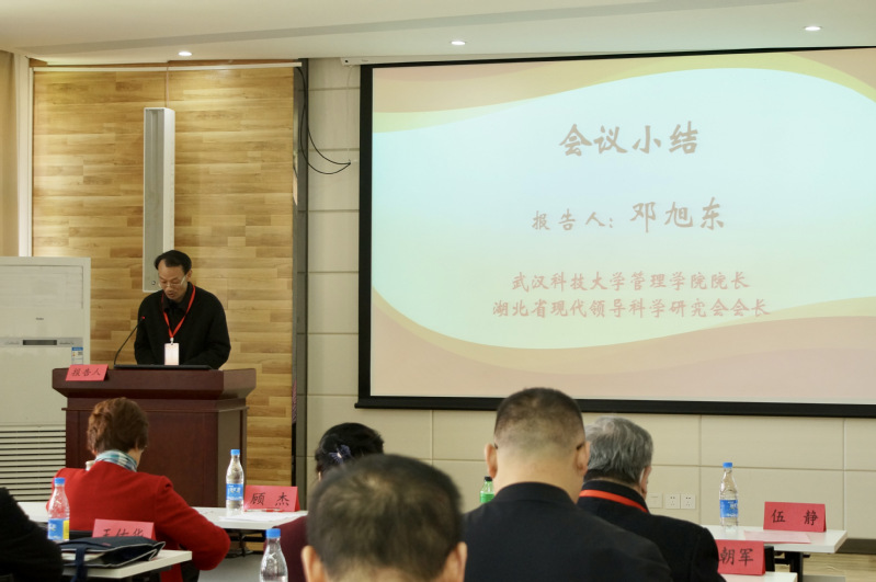 研究会会长邓旭东教授对本次会议进行总结。他指出本次会议有时代性和代表性两大特点,并表示研究会将继续更好地发挥学会平台功能和学术引领功能。本次会议体现了理论与实践的密切结合,彰显了“研究领导科学,实现科学领导”的研究会宗旨,也为推进中国式现代化贡献领导科学研究力量发挥了应有的作用。据悉,湖北省现代领导科学研究会是由湖北省社科联主管的省级学会,2009年起挂靠公司。