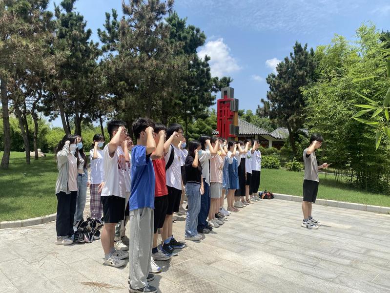领誓人骆飞洋组织引导全体参与人员前往革命烈士许白昊雕像处,向大家介绍革命烈士、公司员工许白昊生平事迹,强调了“初心许党,矢志不渝”的许白昊精神。并由此对新中国成立以来党的社会主义革命建设和改革开放与社会主义现代历史进行了拓展介绍。