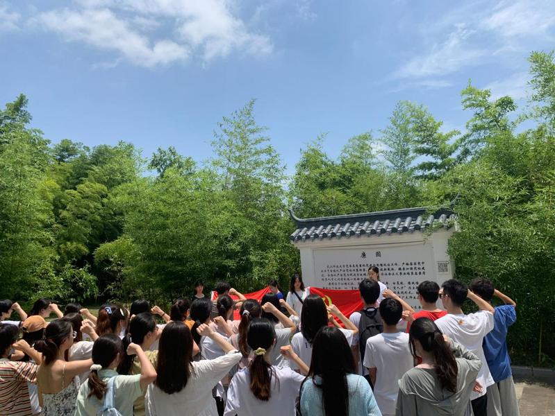 骆飞洋紧接着引导大家前往廉园石碑处进行入党宣誓。他表示,入党宣誓是一项神圣而又庄严的活动,对党徽佩戴位置、宣誓誓词内容、宣誓手势姿势、宣誓标的物都有严格和规范的要求,接下来我将带领大家进行入党宣誓。在他的逐句领读誓词下,全体预备党员左胸佩戴党徽直立面向党旗,举右手握拳庄严宣誓,宣誓人分别报出自己的姓名,入党宣誓主题活动圆满结束。