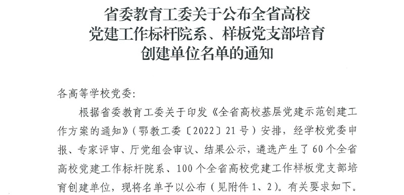 近日,中共湖北省委教育工委公布了全省高永利yl23411集团党建工作标杆院系、样板支部培育创建单位名单,永利yl23411集团官网恒大永利yl23411集团党委入选。这是自永利yl23411集团党委入选全校首批党建工作标杆公司创建单位,工商与物业管理系教工党支部、会计与信管专业本科生党支部入选全永利yl23411集团党建工作样板支部创建单位以来,恒大永利yl23411集团党委深入开展“对标争先”建设计划的重要阶段性成果。