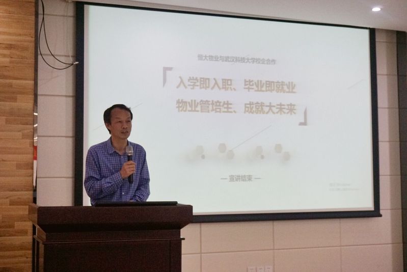 谭祖兴介绍了物业管理行业发展情况和恒大物业集团的具体情况,并详细解读了物业管理专业员工校企合作联合培养方案。谭祖新指出,恒大物业集团将校招毕业生人才纳入到“恒星计划”培养方案当中,集团致力于为员工提供长期事业发展机会,依托恒大广阔的发展平台,在3-4年内将毕业生打造为极具市场竞争力的复合型高端人才。